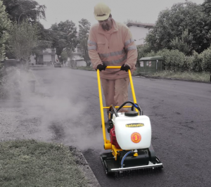 For asphalt jobs, from new driveways to patch repairs, a plate compactor is invaluable. The most important factor here is temperature. Hot mix asphalt has to be compacted while it’s still hot and workable, so you have to move quickly.
